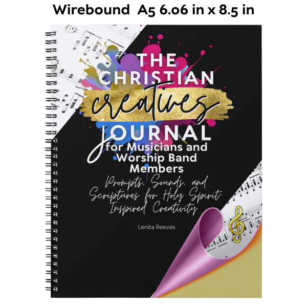 It’s a wonderful gift for yourself and others, designed for Christian musicians, worship band members, and any believer with a creative bent. Christian Creatives have a unique opportunity to influence the world for Jesus and need encouragement to connect with the Holy Spirit, the ultimate source of creativity. This journal is grounded in the Christian Creatives Creed©, and the Scriptures focus on worshipping God and the sounds listed in Scripture. You are encouraged to meditate on the Scriptures and ask the Holy Spirit to help you experience them through all five senses.