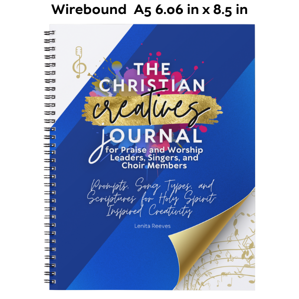 It’s a wonderful gift for yourself and others to inspire worship through existing and new songs. Christian Creatives have a unique opportunity to influence the world for Jesus and need encouragement to connect with the Holy Spirit, the ultimate source of creativity. This journal is grounded in the Christian Creatives Creed©, and the Scriptures focus on the distinctive types of songs listed in the Bible. You are encouraged to meditate on the Scriptures and ask the Holy Spirit to help you experience them through all five senses.